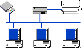 An important concept when speaking of LANs is resources. Resources in this context means equipment normally connected to the PC (to be taken up later), for example printers or CD-ROM drives, and data (files). What particularly characterizes a LAN is that these resources can be shared by the users of the network. A printer which may be located in a different room (or office) is accessible by other users on the network. This also applies to files. In cases where a project group works on a common set of documents, the system can be set up such that each of the group's members has access to these files. This can save a lot of time and work as the group members will not need to run around from office to office with diskettes to get the latest version of a document. Instead, the latest version can be saved on the network.
