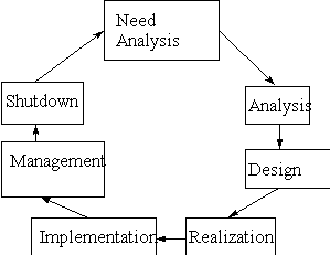 Concerning system development (programming) it is often a given that it will be project steered and therefore go through all these phases. Installation of a LAN has a tendency to place all of its weigh on the fourth and higher phases. This is very unfortunate. It is important to carry out a good and thorough analysis of the firm's needs and wishes. Often an investment of this size is much too large in relation to the need. Such cases can be brought to light already in phase 1 of the life cycle model.