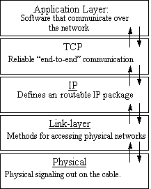 In the section above we have seen that TCP/IP is a layered model (also called the TCP/IP-stack). This layering is shown in figure 2.