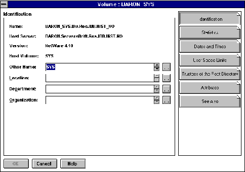 Figure 5 - VolumeIt is possible to have up to 64 volumes on a NetWare fileserver. The first volume is always called the SYS-volume. This volume contains the system files Novell needs to work as an operating system.:
