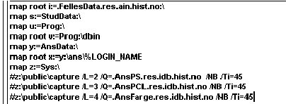 Login script is used to standardise settings at logon. The most usual task for the login script task is to connect to logical drive, for example Y:, to a NetWare-volume (MAP-commands). Other tasks is to set up the printer milieu as it is meant to be for each user (or more commonly; groups of users) or to give a "today's news" message.