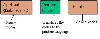 Different printers also have their own languages. There is no such thing as a standard printer language. Therefore we need a unit tat are capable of translating signals from the language of the text-editor to the language of the printer. This translator is the printer-driver (Figure 4).