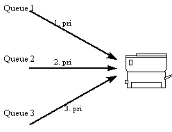 - Queue based priority. This method it often used. Each printer is assigned several queues, and each queue has its own priority. Imagine an example with three queues connected to one printer (Figure 8).