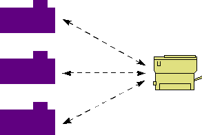 A printer is usually used only in a small part of the day. This is a waste of resources.- Printer share box is a cheaper alternative for printer sharing if that is the only reason to get a network. Such boxes are available in more or less intelligent versions. From the versions where a switch is set on the box according to who is supposed to print, to those that has memory enough to store the tasks from several computers and prints them out according to the time of arrival (first-in-first-out). A share-box system is demonstrated in Figure 2.