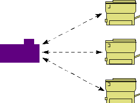A printer server are able to serve up to 256 servers, and five of these can be connected locally to the server (two at the serial ports (COM-ports) and three at the parallel ports (LPT-ports)). The others are connected to other servers, directly on the network if the printer has a network adapter, or on workstations (remote printer).