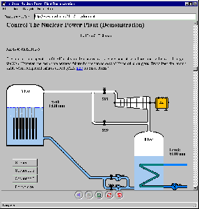 Above you can see a Java Web page which simulates the Chernobyl disaster. Everything on this page has been downloaded from a Web server in the USA. The elements appear on the page as they arrive, and they start to animate. You may then select various scenarios, set your own parameters to simulate different events etc. It is worth noting that everything needed for this simulation was downloaded when you selected this Web document. This means that all application software needed for the simulation is running on your local PC.